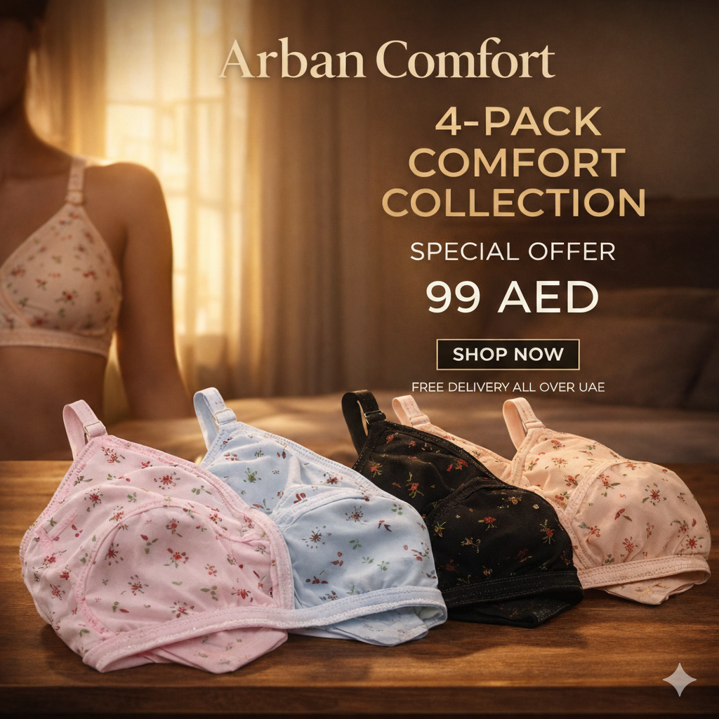 Special Offer: 4 Jersey Comfort Bras for only 99 AED β comfort youβll feel the moment you wear it!